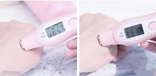 用水分测试仪一测,魅姐都要惊呆了,涂粉水之前,肌肤含水量为10.5%,涂粉水之后肌肤含水量足足提高了5倍,含水量一下到了50.9%!