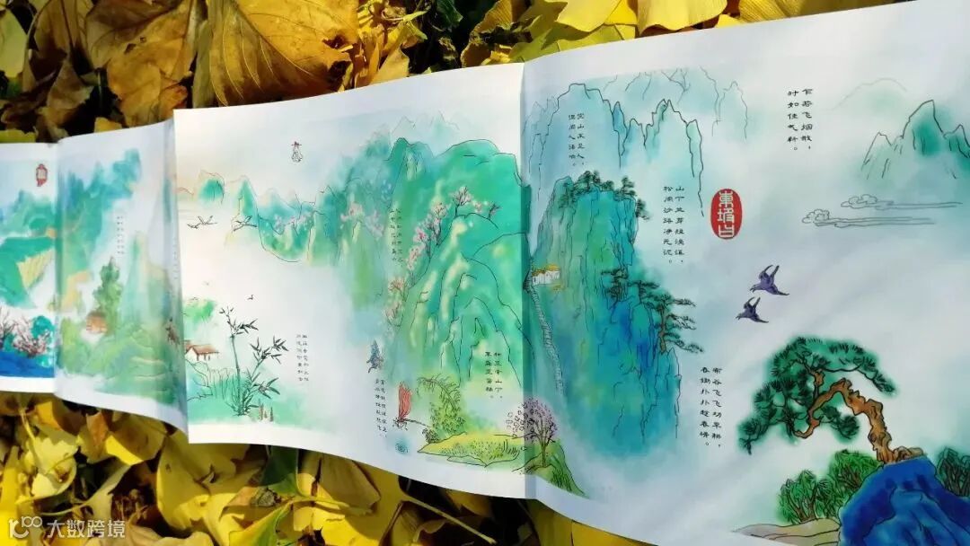 赠品一:超长的拉页画卷《千里诗意图》,尺寸:880mm*145mm,享受视觉盛宴。