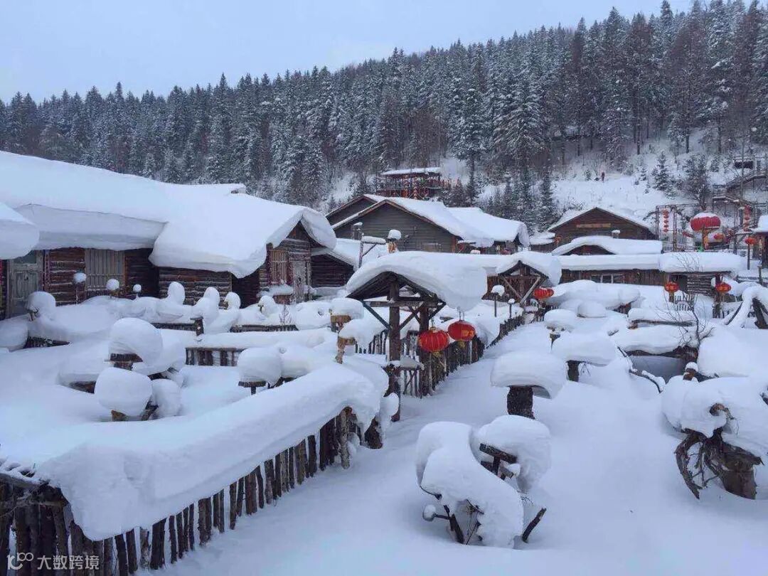 东北的传统民居非常有特点,家家户户都有院子,院子一圈夹着高高低低的“障子”。雪一下,整个院子全是白的,衬着星星点点的红,整个画面非常有年味!