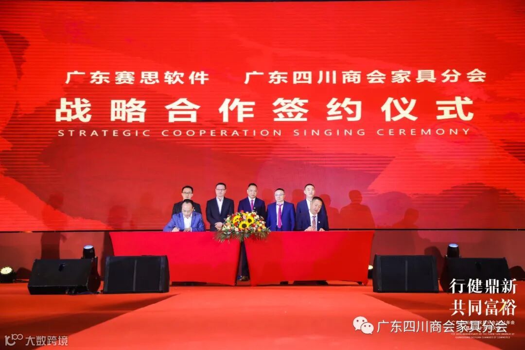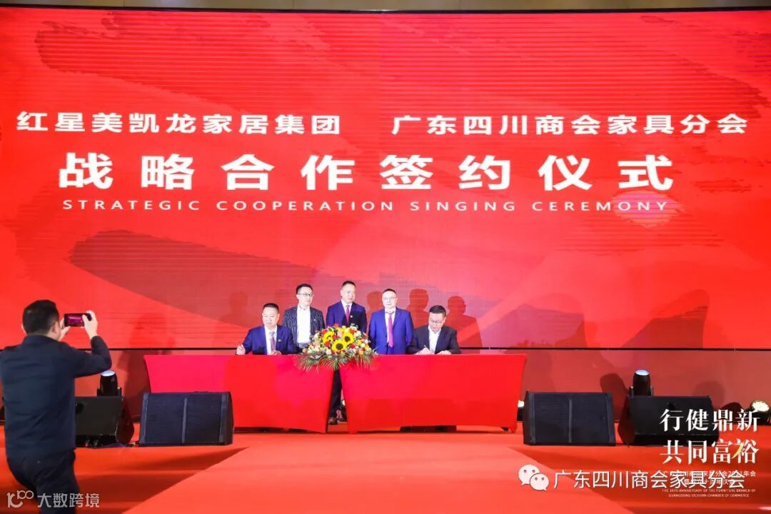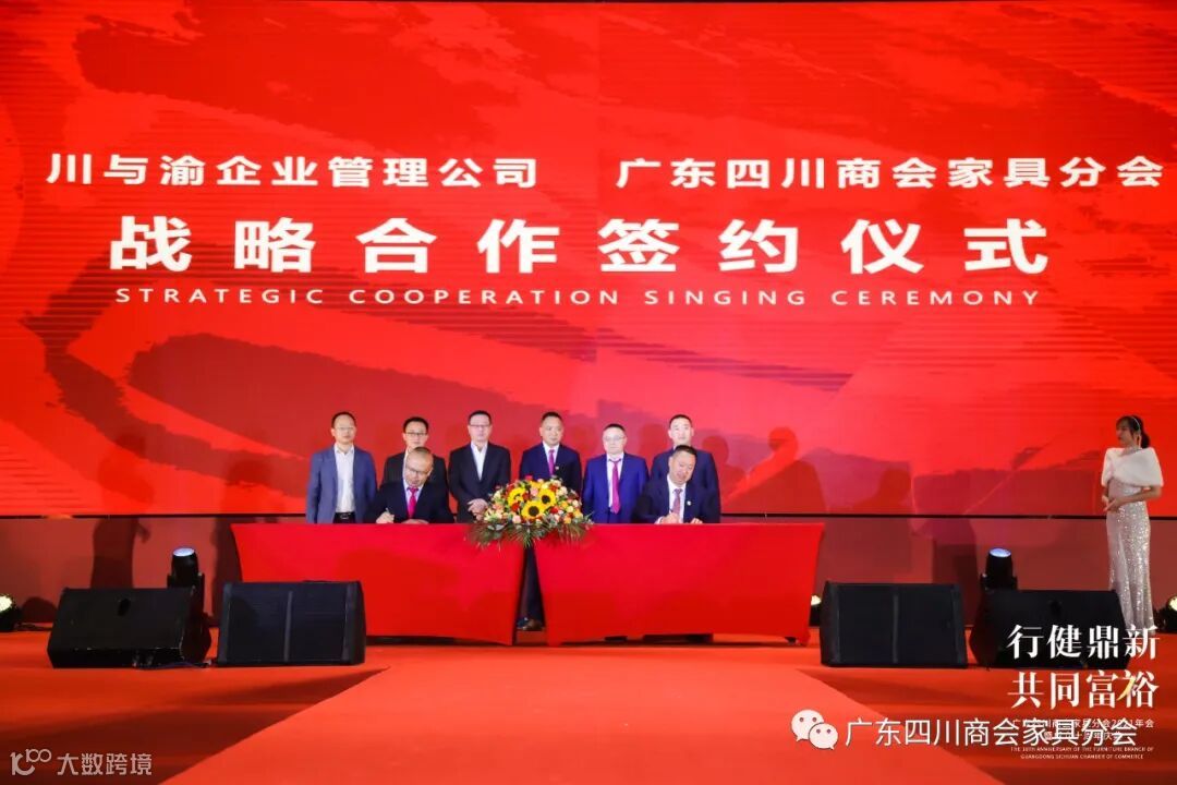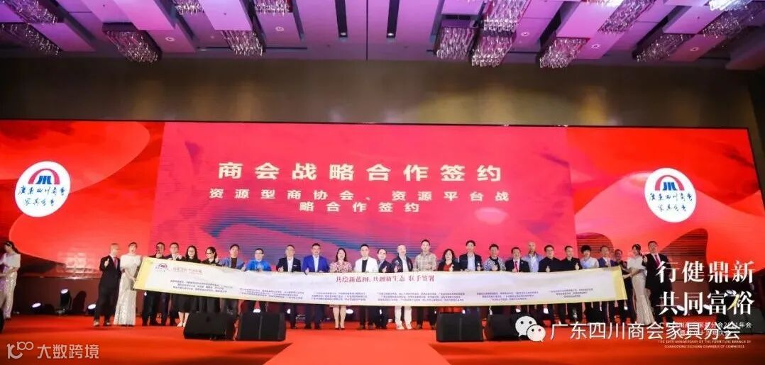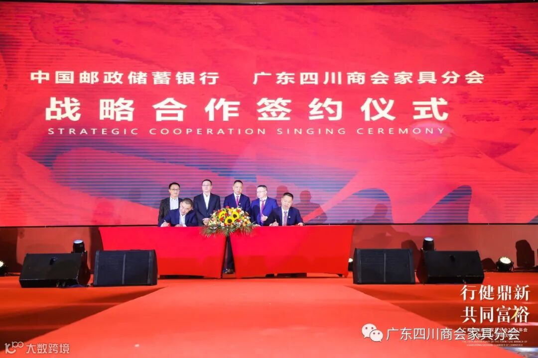 随后,广东四川商会家具分会与红星美凯龙家居集团、中国邮政储蓄银行、广东赛思软件公司、中天领域智造产业园、川与渝企业管理公司举行战略合作签约。并与30多家行业商协会、资源平台举行了联手签署仪式,共绘新蓝图,共创新未来!