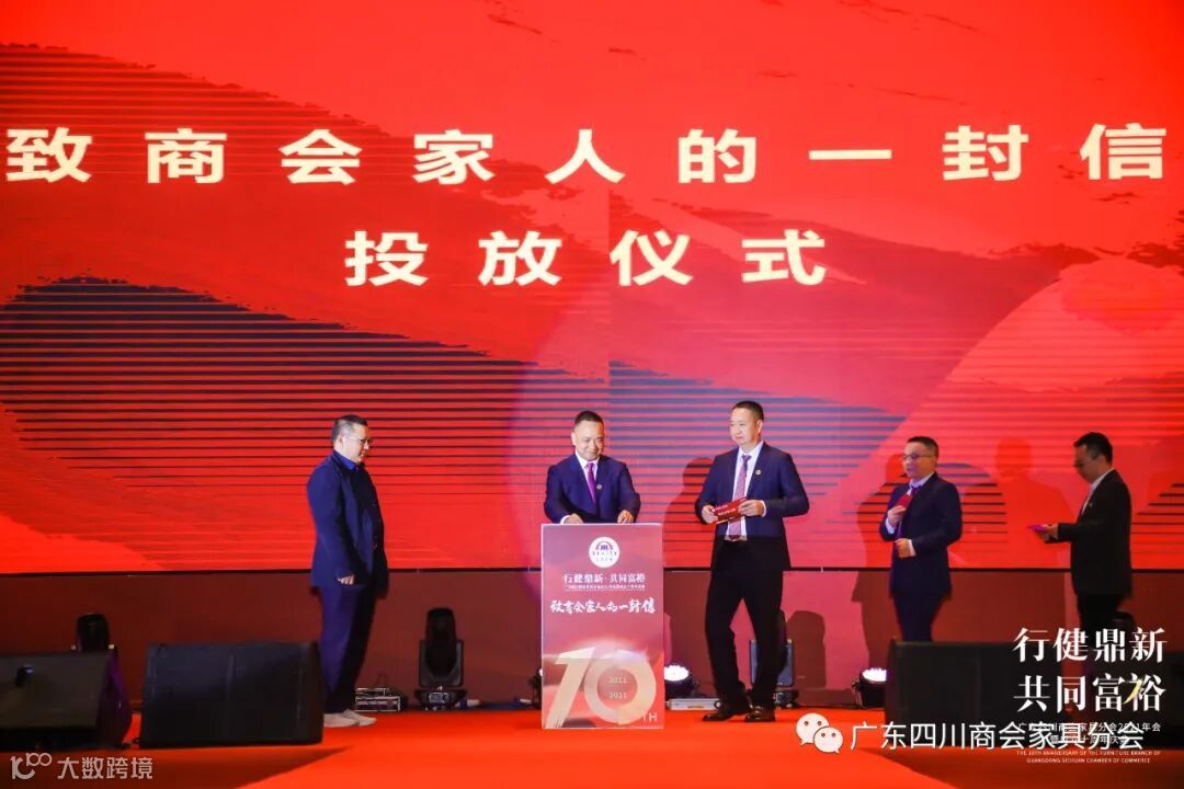 广东四川商会党支部书记陈建斌见证了家具分会执行会长以上领导的“家书”投递仪式,并做重要讲话:
