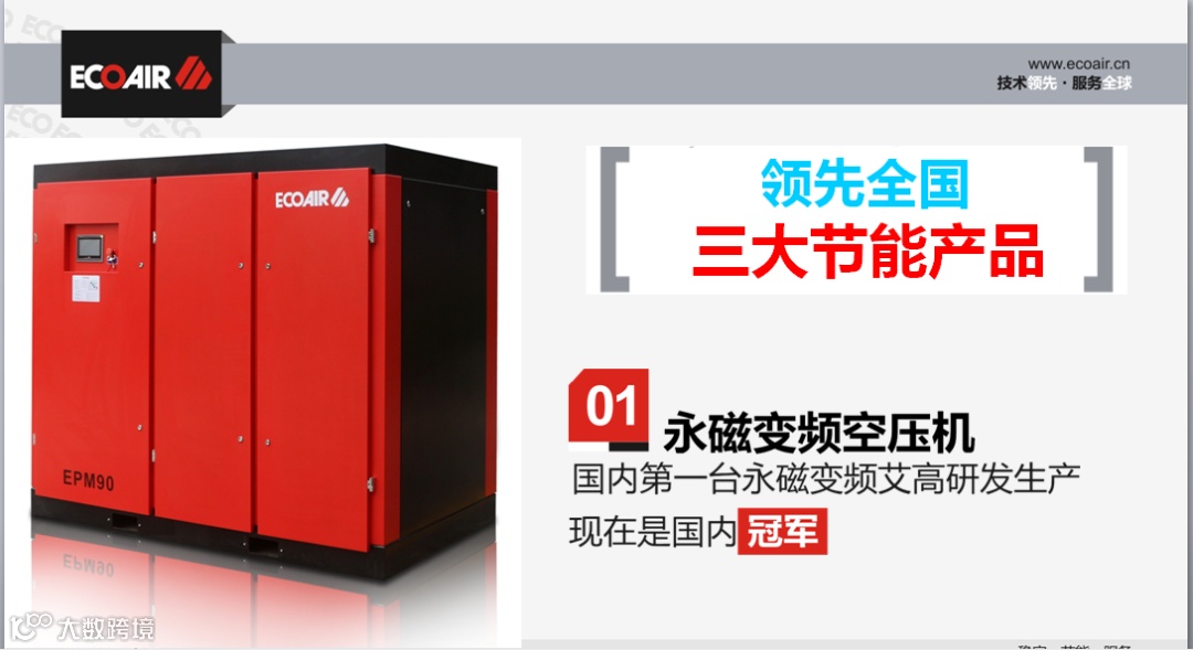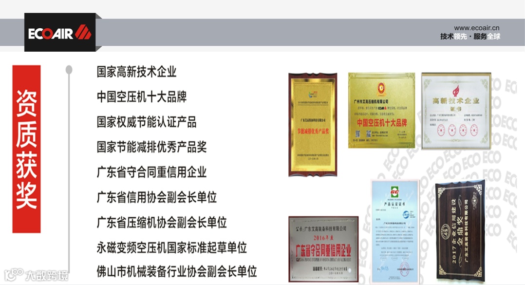 艾高创立于2004年,秉承“技术领先、科学管理、品质优异、服务至上”的质量方针,让每个用户都能获得优质、节能、可靠的压缩空气体验。公司先后成为国家标准GB19153-2019及行业标准JB/T13345-2017起草单位、广东省压缩机协会副会长单位、佛山市机械装备行业协会副会长单位;通过了ISO9001:2015质量管理体系认证、ISO14001:2015环境管理体系认证、ISO45001:2018职业健康安全管理体系认证;获得知识产权管理体系认证、GCCA产品诚信联盟认证、GC产品节能认证、GCCA产品质量安全认证、欧盟CE认证;高新技术企业、专精特新企业等一系列国家权威机构颂发的证书;连续评为“广东省守合同重信用企业”,连续入选中国空压机十大品牌,其中永磁变频YTJ、BPM、DGT系列产品通过了国家节能产品认证,并荣登工信部年度“能效之星”装备产品目录,APM、BPM、EPM、DGT、YTJ系列产品被评为高新技术产品,并获得国际节能减排优秀产品奖。