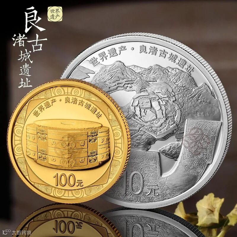 世界遗产(良渚古城遗址)金银纪念币一套3枚,其中金质纪念币1枚,银质纪念币2枚,均为中华人民共和国法定货币。