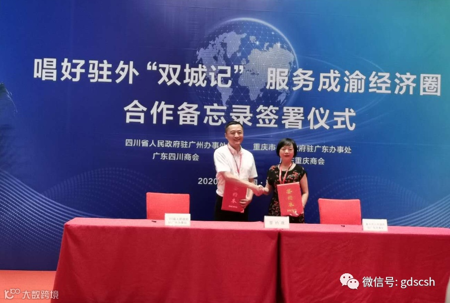 为抓住成渝地区双城经济圈建设机遇,充分发挥商会桥梁纽带作用。本着服务社会、服务会员、服务政府、以优势互补、增强合作、协同发展为原则。理事长朱曲波代表商会与广东省重庆商会签署了合作备忘录。四川省人民政府驻广州办事处主任王德胜与重庆市人民政府驻广东办事处主任陈小南签署了合作备忘录。在现场嘉宾的见证下,合作备忘录圆满签署。