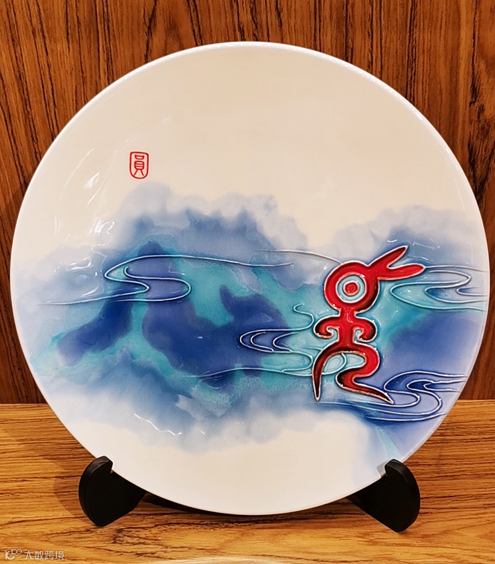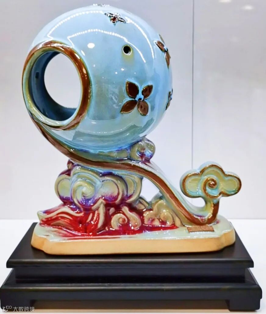 由中国工艺美术大师孔相卿创意、设计钧瓷作品《如意中秋》,主体造型为祥云托起一轮明月,二者上下呼应、相对顾盼,形似一只如意,而明月的一端则是装饰点点金桂。