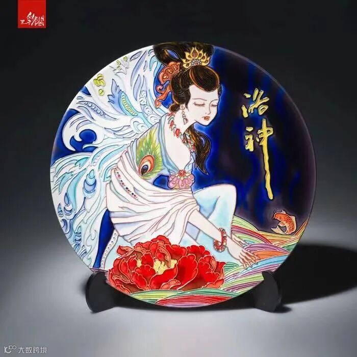 郭爱和三彩釉画 《洛神》瓷盘