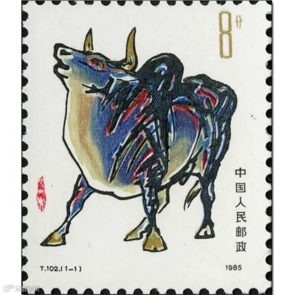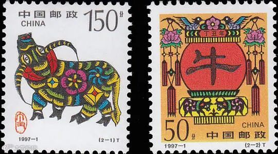 第一枚展现了雄壮有力、一往无前的奔牛形象,第二枚表现大牛与小牛舐犊情深的温馨画面。