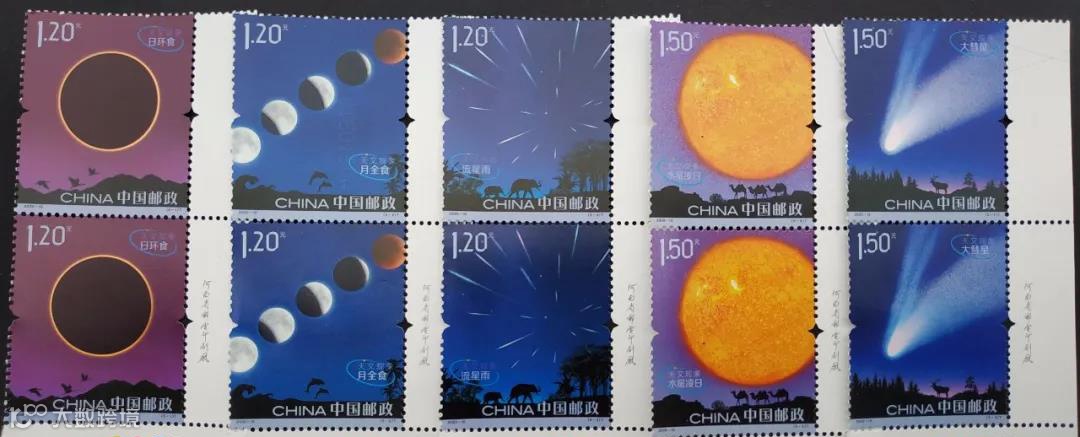 《天文现象》暗记为每枚邮票的票名的汉语拼音。