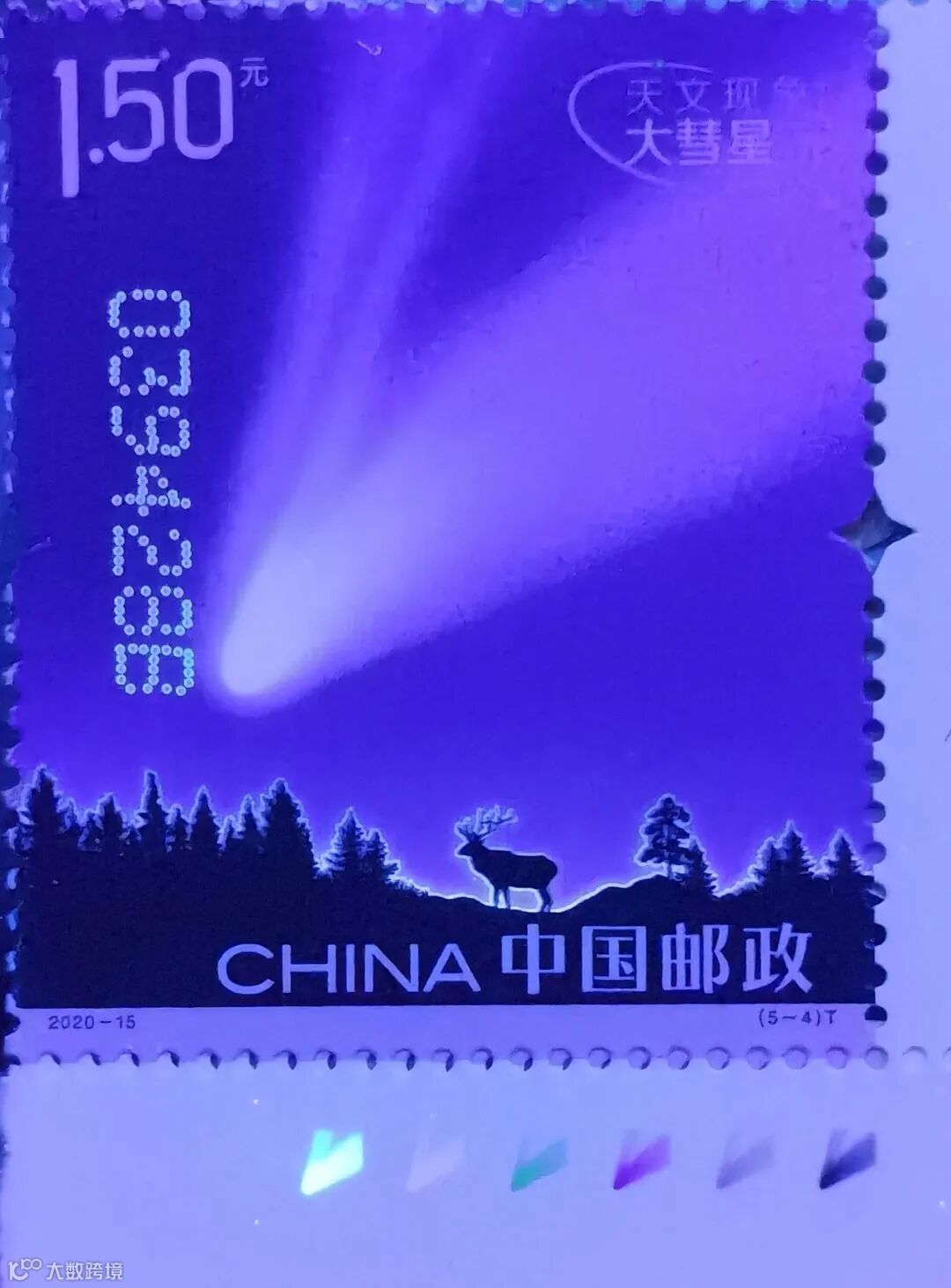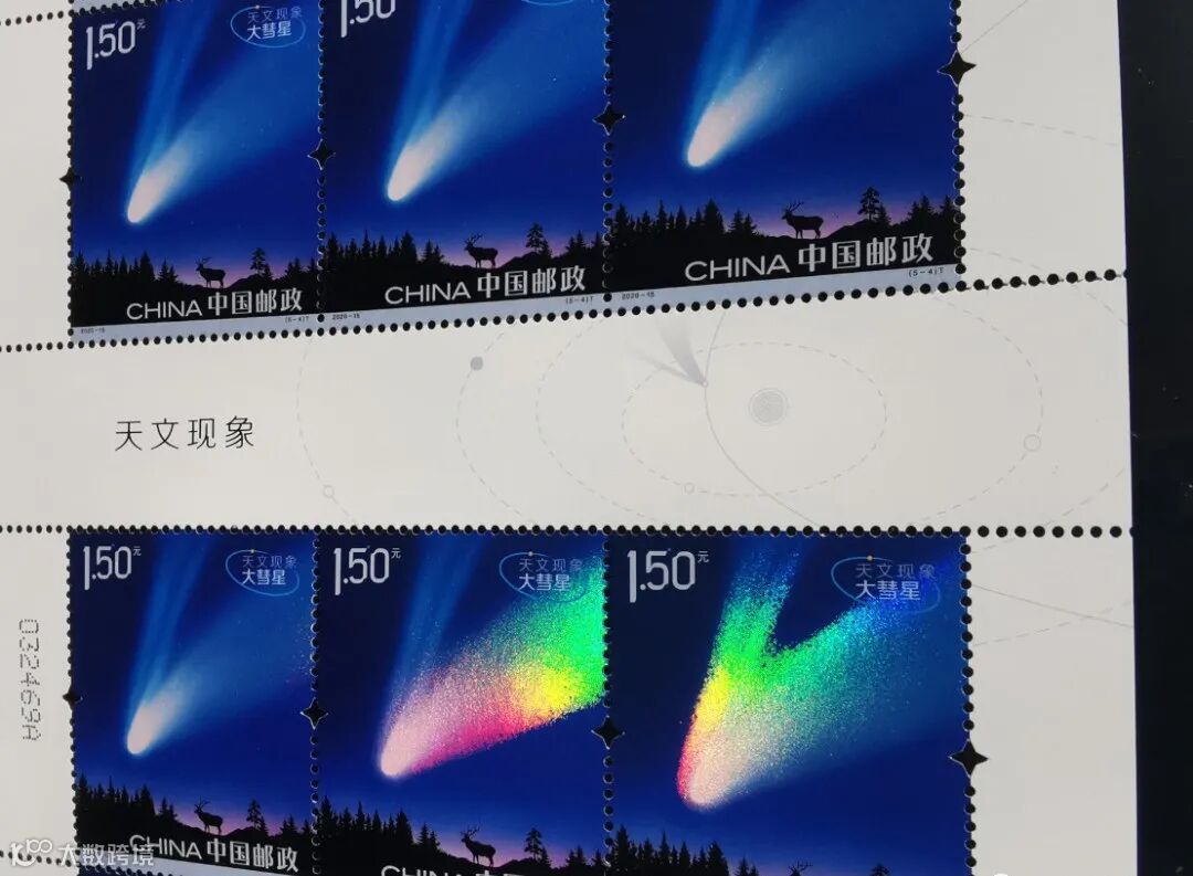 第4枚为“大慧星”汉语拼音首字母“DHX”,位于邮票左下侧树林中。