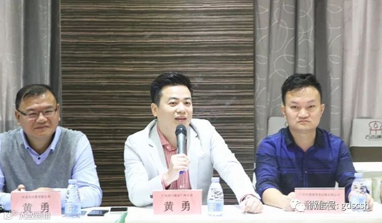 广东四川商会广州分会会长黄勇先生首先发表了热情洋溢的致辞:他说,热忱欢迎台湾企业家到广州参观考察、寻找商机、共谋发展。广东四川商会广州分会成立于2013年,是一个凝聚广州川人力量,旨在“团结川商、共创财富”的平台,目前会员单位涉及智能制造、新材料、新能源、地产、金融、农业、旅游、产业孵化、高科技软件开发、教育、医疗养老、服务业等,遍及广东省内各区域。