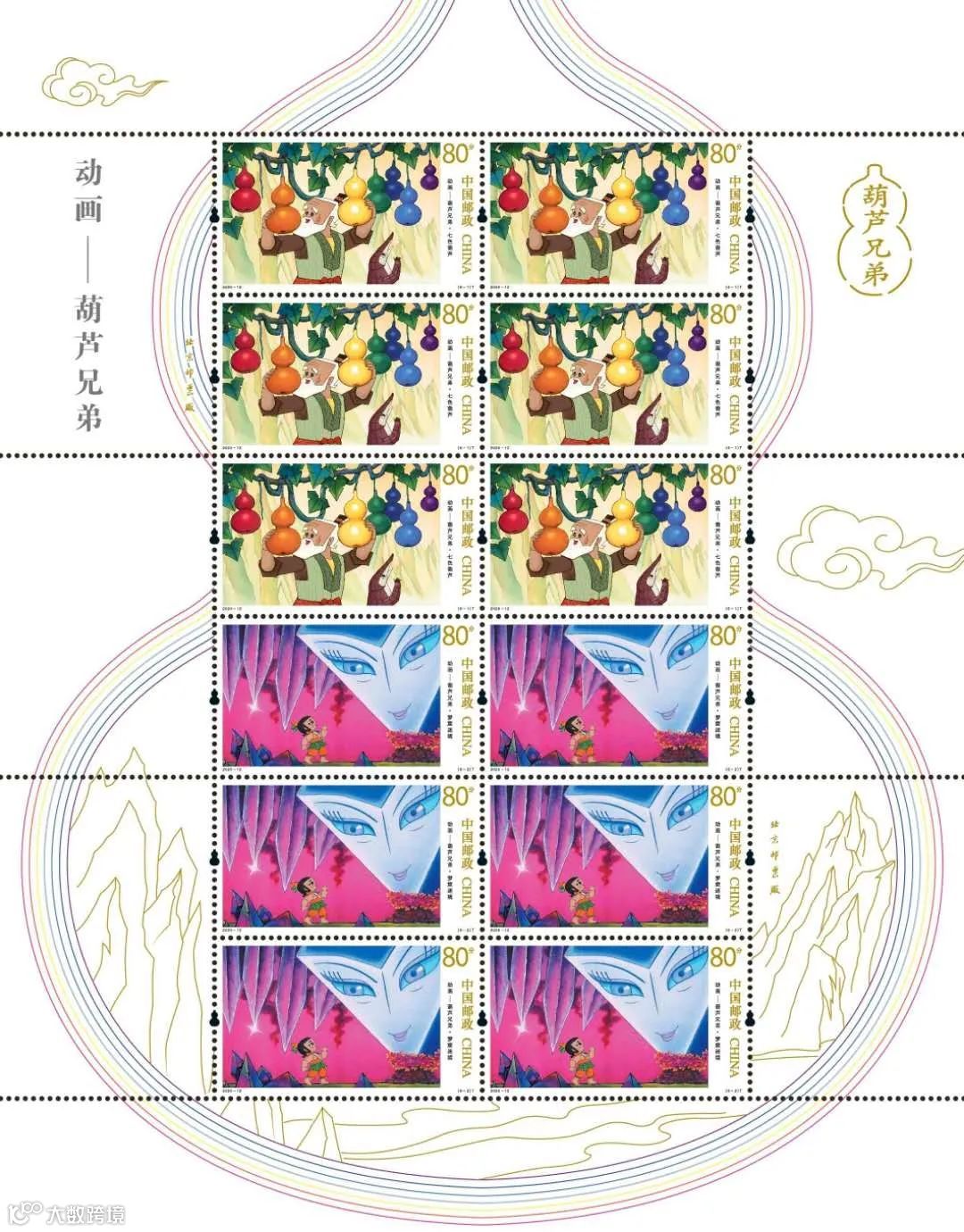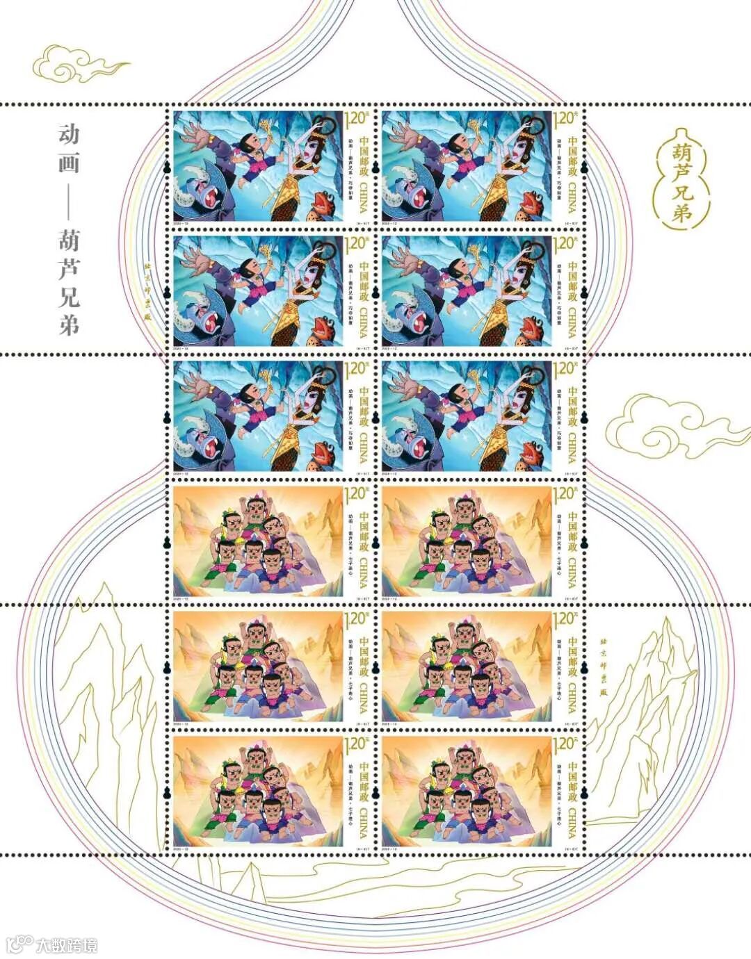 今年6月1日,中国邮政将发行《葫芦兄弟》邮票,一套6枚。