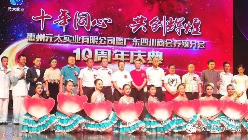 7月13日,以“十年同心,共创辉煌”为主题的惠州元太实业有限公司暨广东四川商会养殖分会十周年庆典活动在广东惠州文化艺术中心隆重举行,来自养殖业企业家朋友,川籍企业家、商协会代表近千人出席了此次庆典活动。我会会长王开庆率总会及各分会会员共计166人出席了活动。