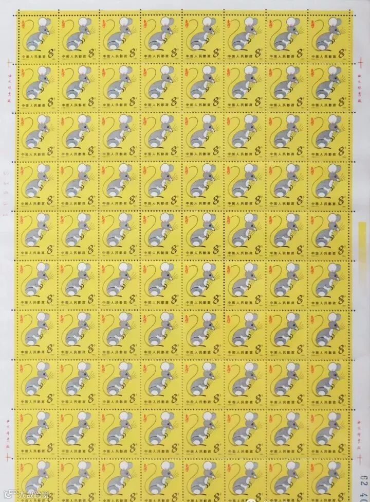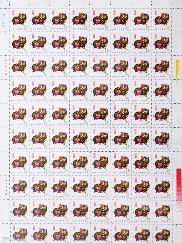 首轮生肖邮票,每版均为80枚邮票,横10排竖8行。版票的边纸上有印刷单位的铭记,简称版铭;还有色标、基准线也称十字线、印张号、版票号等。这些都是了解、研究邮票生产、印制过程的重要信息、资料。一般专业的收藏爱好者要收藏整版票,收藏价值及升值前景才更好!而且首轮生肖邮票经过前两天的市场价格调整,已经到了近8年来的最低价,值得拥有!