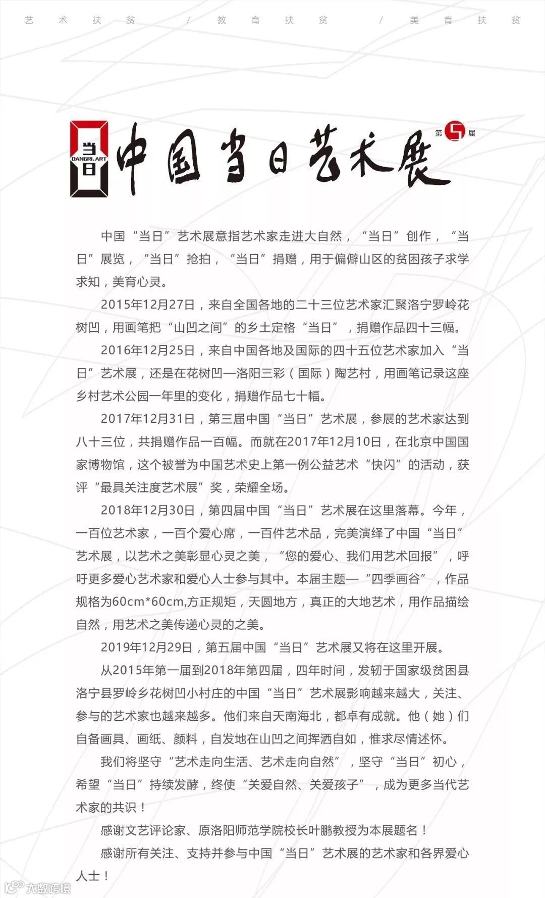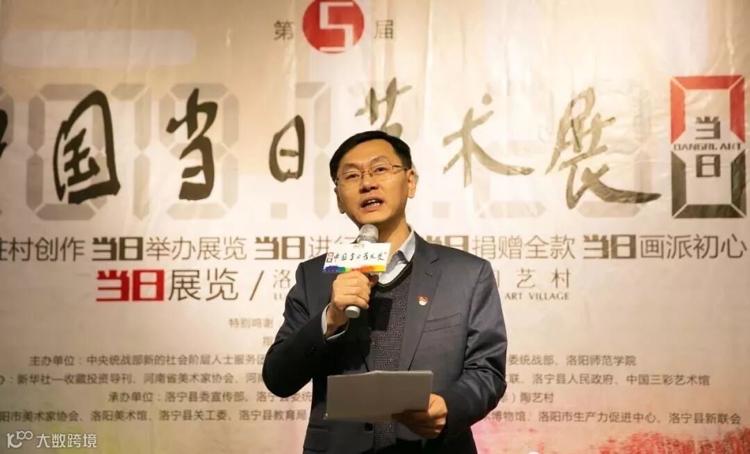 在本届【当日】艺术展捐款仪式开始之前,洛宁县副县长杨桅代表洛宁县政府致辞,并对第四届【当日】艺术展爱心善款使用情况宣读说明。