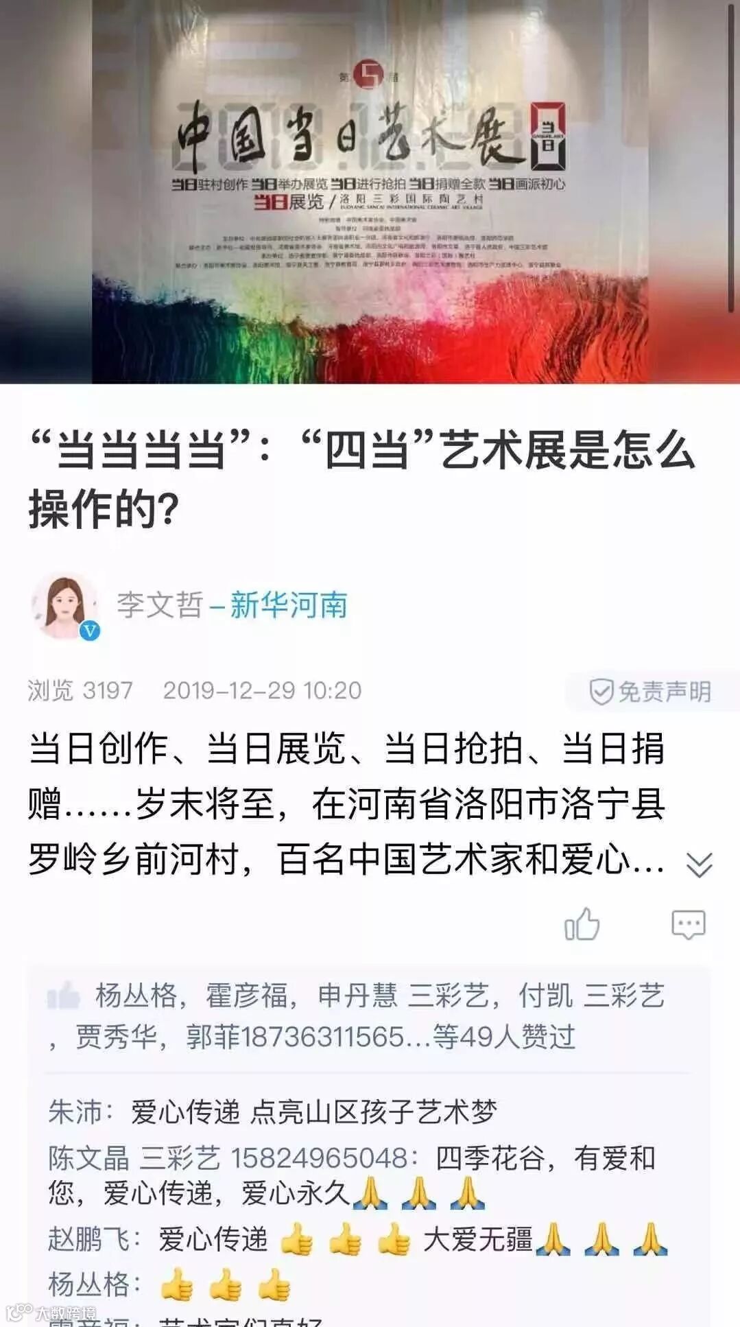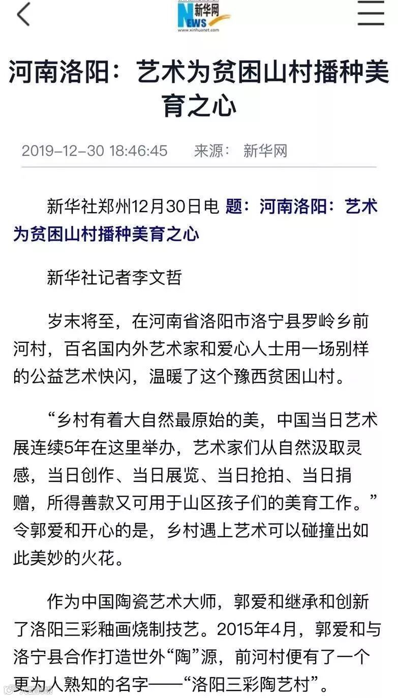 至此,由河南省委统战部指导,中央统战部新的社会阶层人士服务团自由职业一分团、河南省文化和旅游厅、洛阳市委统战部、洛阳师范学院主办,新华社—收藏投资导刊、河南省美术家协会、河南省美术馆、洛阳市文化广电和旅游局、洛阳市文联、洛宁县人民政府、中国三彩艺术馆联合主办, 中国陶瓷艺术大师、中国三彩艺术馆馆长、洛阳市新联会会长郭爱和策展的第五届中国【当日】艺术展圆满收官。