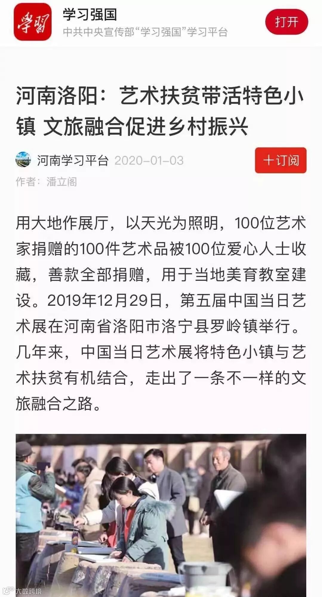 上午10点30分,在洛宁罗岭苍茫山色之间,以白云蓝天、自然山川为背景,以“四季画谷·美丽中国”为创作主题的第五届中国【当日】艺术展—一百位艺术家一百件艺术品在爱和小镇正式开展。