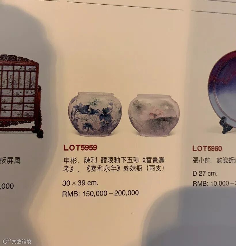 2019年12月5日,刚刚结束的北京保利2019秋季拍卖会”百年瓷艺——近现代文人瓷画“,《陈利 申彬 醴陵釉下五彩《富贵寿考》《嘉和永年》姊妹瓶》最后以RMB 280,000元成交,让我们来看看现场: