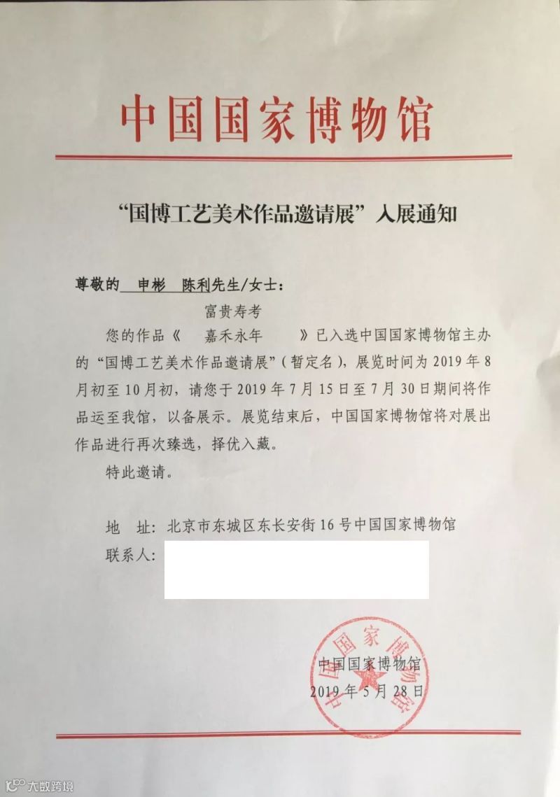这是建国70周年最高规格的展览,作为中国当代最顶级的艺术陶瓷世家之一,中国国家博物馆特邀湖南醴陵釉下五彩瓷陈扬龙家族:省级非物质文化遗产代表性传承人 - 陈利老师的作品《嘉禾永年》、市级非物质文化遗产代表性传承人 - 申彬的作品《富贵寿考》。在建国70周年大展上隆重展出,并被中国国家博物馆收藏。