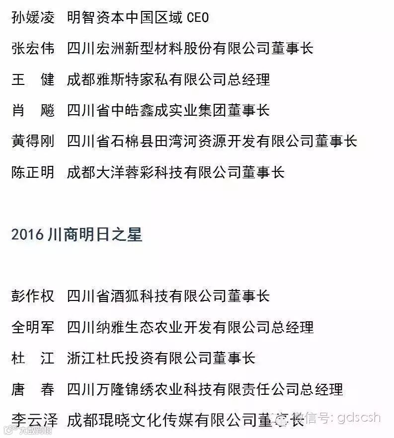 在四川省商务厅、省投促局、省人才办、省工商联、团省委以及四川日报报业集团的指导下,由川商杂志社、川商全国理事会、全国青年川商联席会主办的2016青年川商发展峰会暨第四届杰出青年川商推选活动,经专家评审通过,确定了“2016青年川商领袖”、“2016杰出青年川商”、“2016新锐川商”、“2016川商明日之星”等四大奖项,全国共有34名川商获得殊荣,其中,我会两位领导获得殊荣。