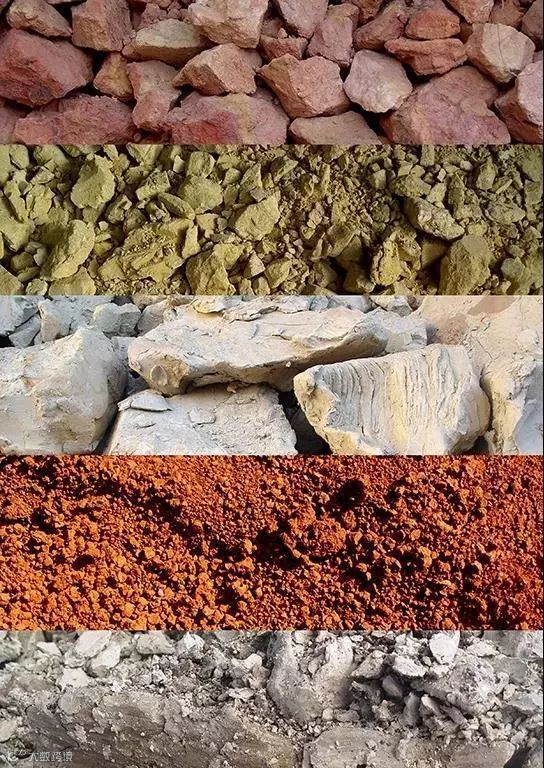 制作建水紫陶的五色土、黄土、白土、灰土呈块状以网带层状与砖红壤性红土共生,含极少量砂粒,粘性极强,距地表约1至10米范围内。