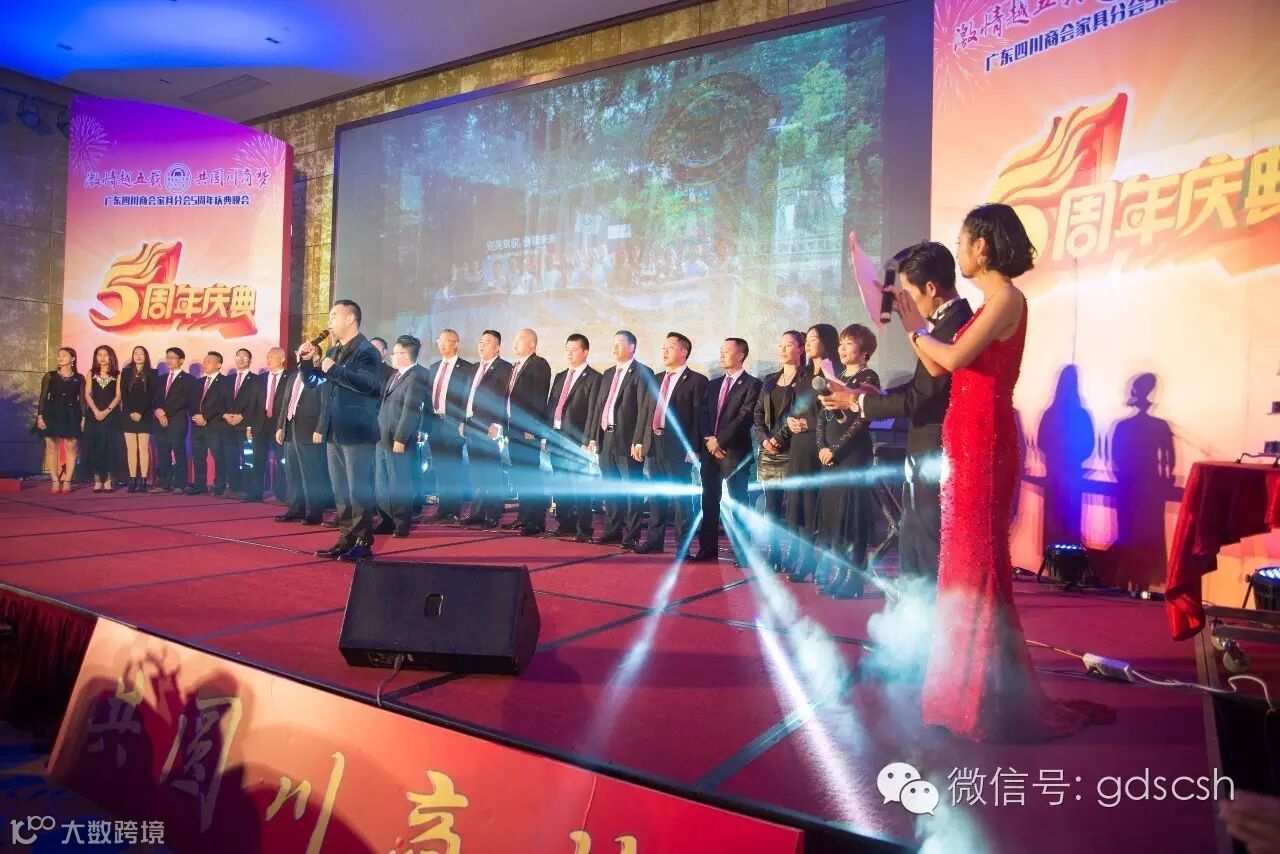 活动现场还播放了家具分会五周年庆典宣传片,展现了川商人抱团发展、无所畏惧、勇往直前的精神。在庆典晚会表演环节中,我会佛山分会会长杜成平携家具分会领导班子共同上台深情演唱了我会会歌《激情的梦想》。王开庆会长及家具分会会长朱玉山亲自抽出了现金大奖,把庆典晚会的气氛推向了高潮。