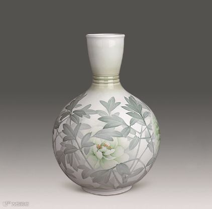 牡丹花的枝叶:采用了陈扬龙研发的其独有配方的沉静清雅的淡墨绿色,以此表明非遗传承的陈扬龙醴陵釉下五彩瓷传承世家愿紧跟国家日新月异的发展步伐,淡泊以明志,守艺而创新的志向与决心。