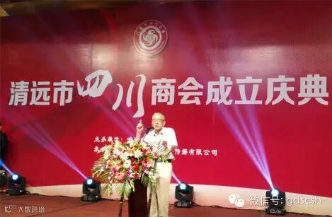 刘福和顾问在致辞讲话中代表我会会长王开庆、理事长朱波、监事长熊宗友向清远市四川商会的成立表示热烈的祝贺。简要介绍了我会的发展历程,概括论述了百万川军下广东的创业历史,分析了川商在全国商帮中的地位和影响力,总结了四川人在中国近现代史上的卓越贡献,极大地振奋了在座的川渝籍人士的拼搏精神,使庆典现场的气氛达到了高潮。