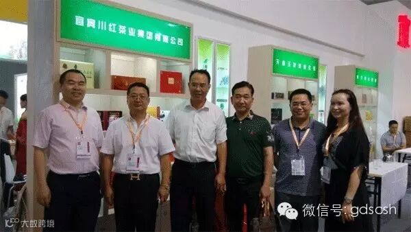 开幕典礼结束后,王开庆会长陪同四川省政府驻广州办事处副主任王强到各个展馆巡视,并在我会会员(杨明泽)企业----宜宾川红茶业集团广东分公司的展馆前合影留念。