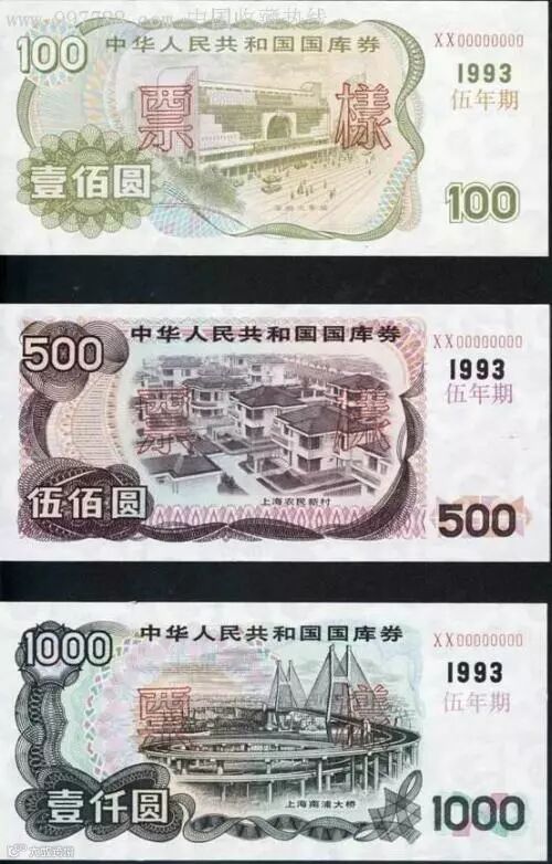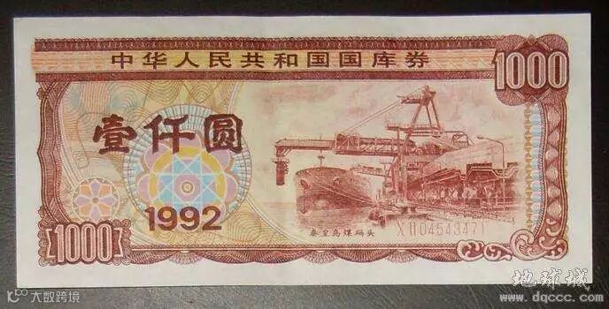 1992年国库券《秦皇岛码头》1000元正面设计。