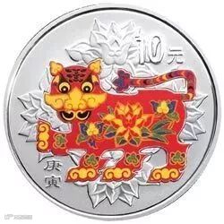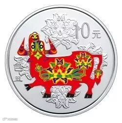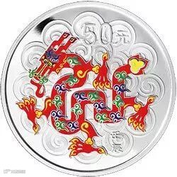 彩色金银币背面图案采用传统吉祥生肖彩色剪纸造型,设计别致,华丽端庄,喜庆之意溢于币面。以下是11枚1盎司(或30克)彩色银币: