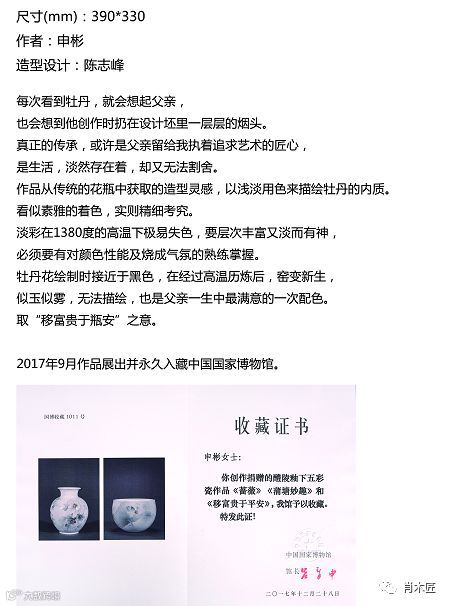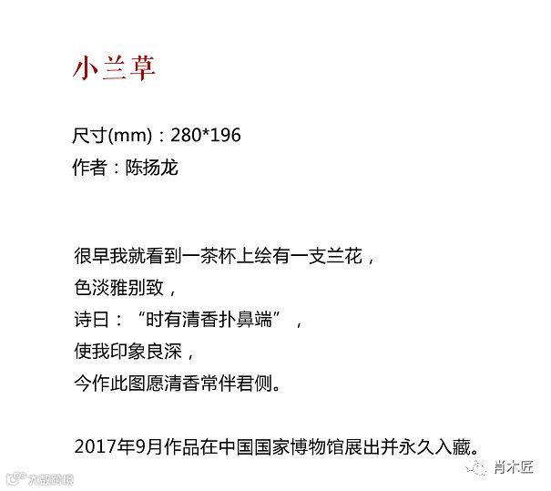2017年9件作品参加中国国家博物馆展出,《移富贵于平安》《蒲塘妙趣》《蔷薇》被中国国家博物馆收藏,其中《蒲塘妙趣》在国家博物馆长年展示。