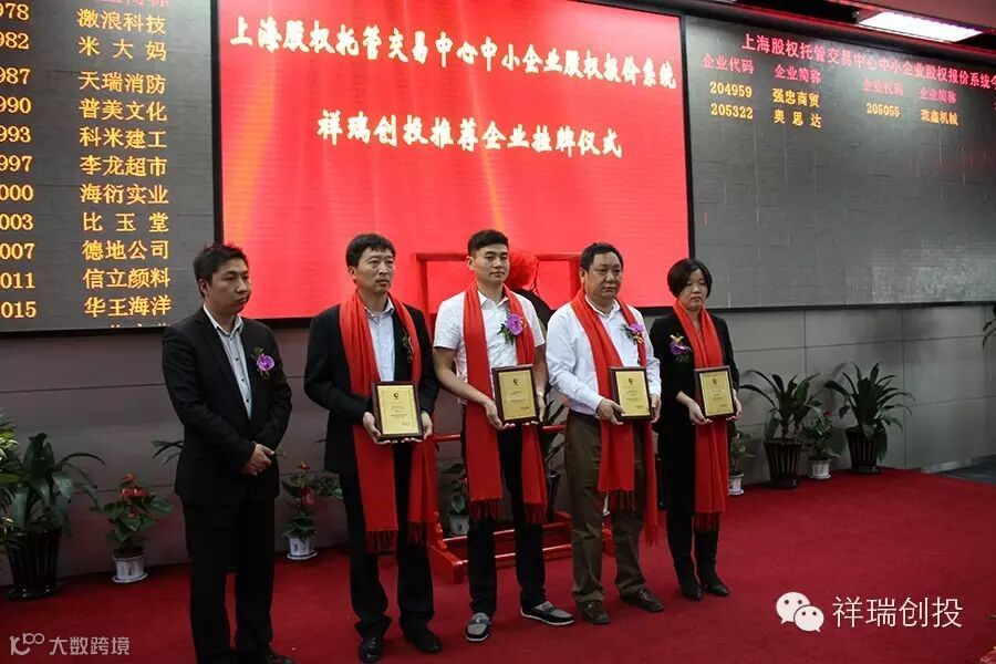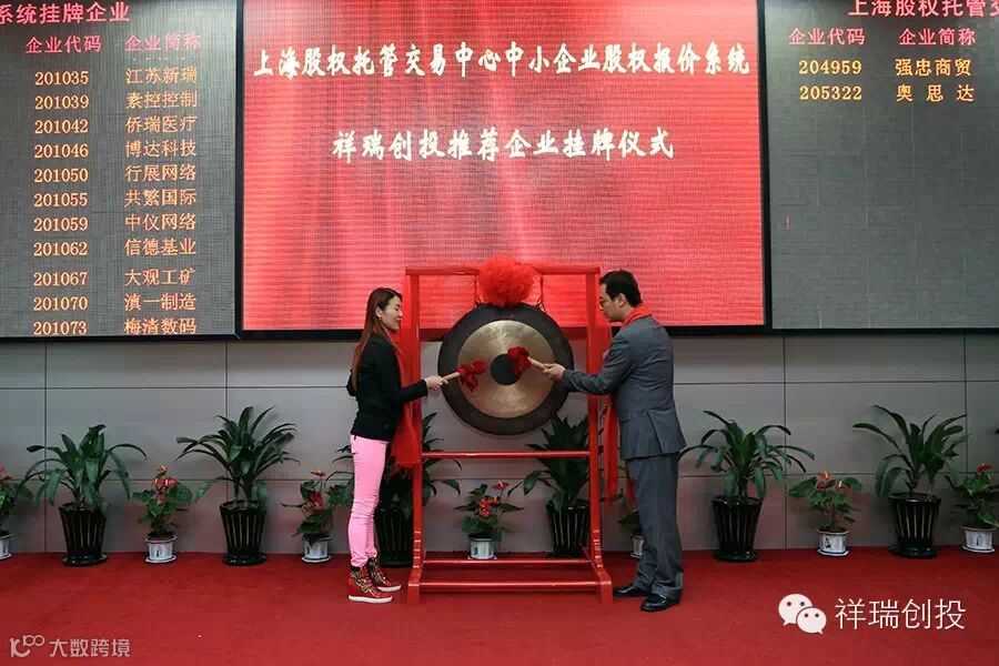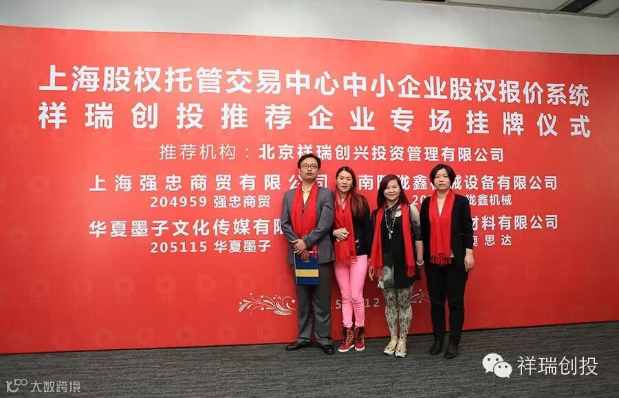 2015年5月12日,由北京祥瑞创兴投资管理有限公司推荐的上海强忠商贸有限公司在上海股权交易中心中小企业股权报价系统(简称Q板)成功挂牌,并于中午12:00隆重举行专场挂牌仪式,企业简称:强忠商贸,股权代码:204959。响亮的铜锣声,标志了珑鑫机械从此刻开始进入了一个里程碑式的全新发展模式。