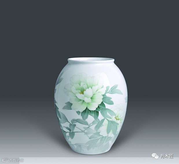 其实,宣纸吸水特点和泥坯吸水是一样的原理,但泥坯的吸水性更强。大胆尝试将色料层层分染,但烧制结果不尽人意,后来又在颜料中加入茶水成分,增加粘性,浓淡反复操作五六次,釉下色料带入了更深层的泥坯中,渐渐地,烧出来的花卉层次越来分明,画面自然生动,清雅淡逸,给人以玉的感觉,雅的感受。
