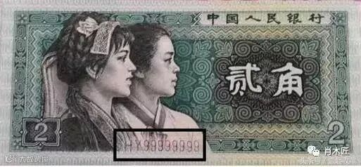 如图所示的两张贰角纸币,价值两万元左右,其特殊之处就在号码上,如此吉祥的号码,非常不多见,一个冠字仅仅只有一张,价值远超你的想象。