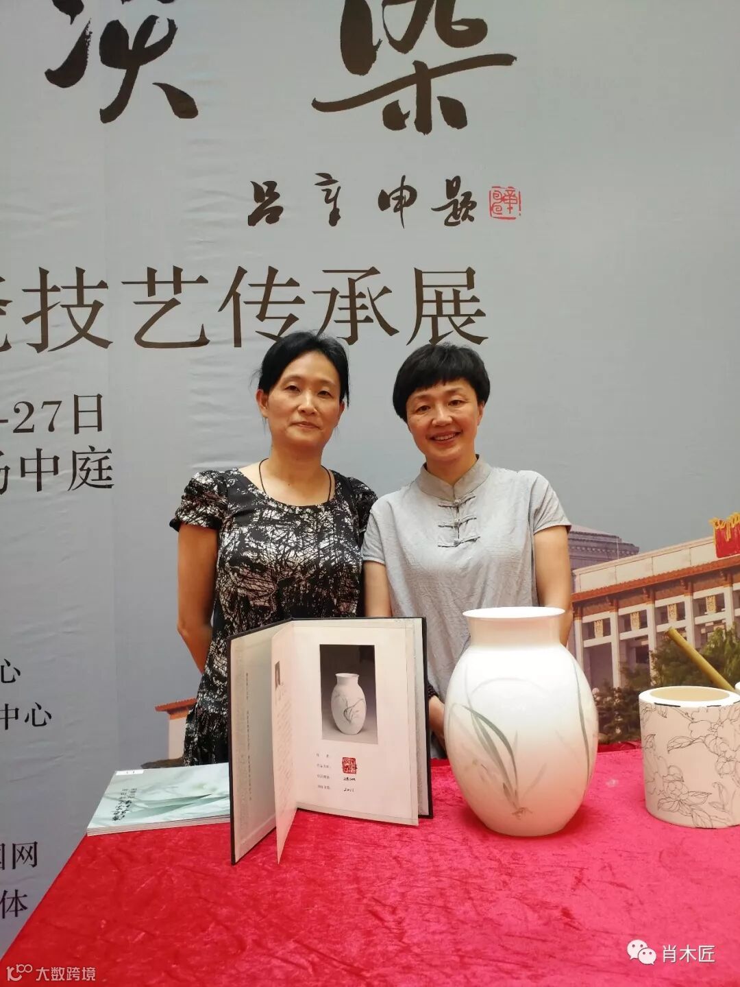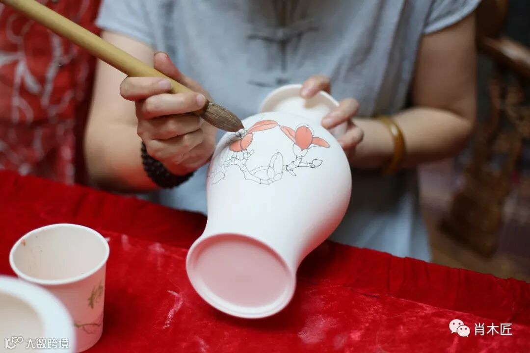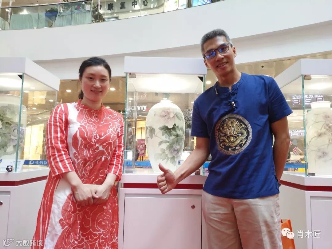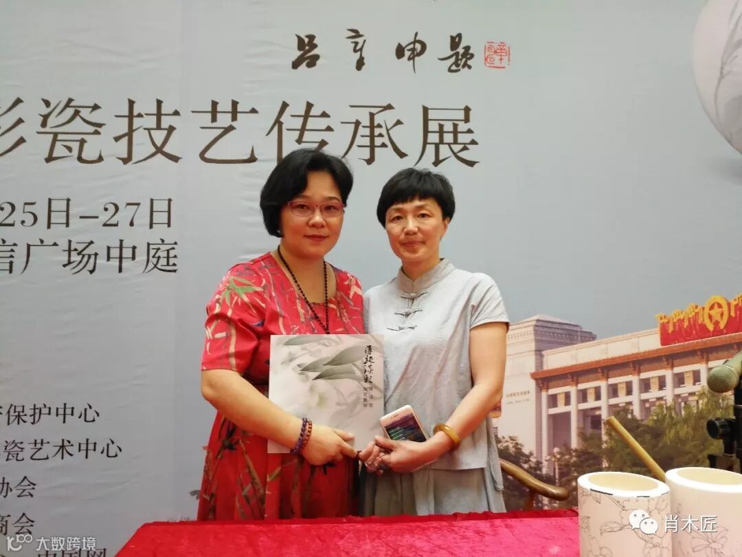 非遗传承人陈利,申彬女士,现场演绎“釉下五彩技艺”
