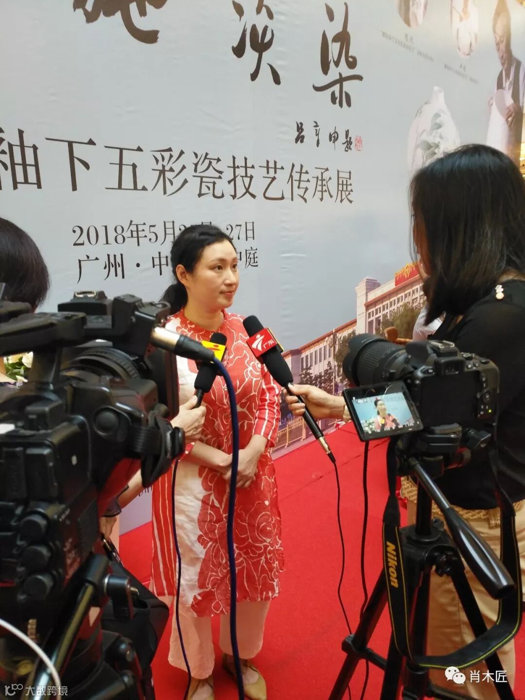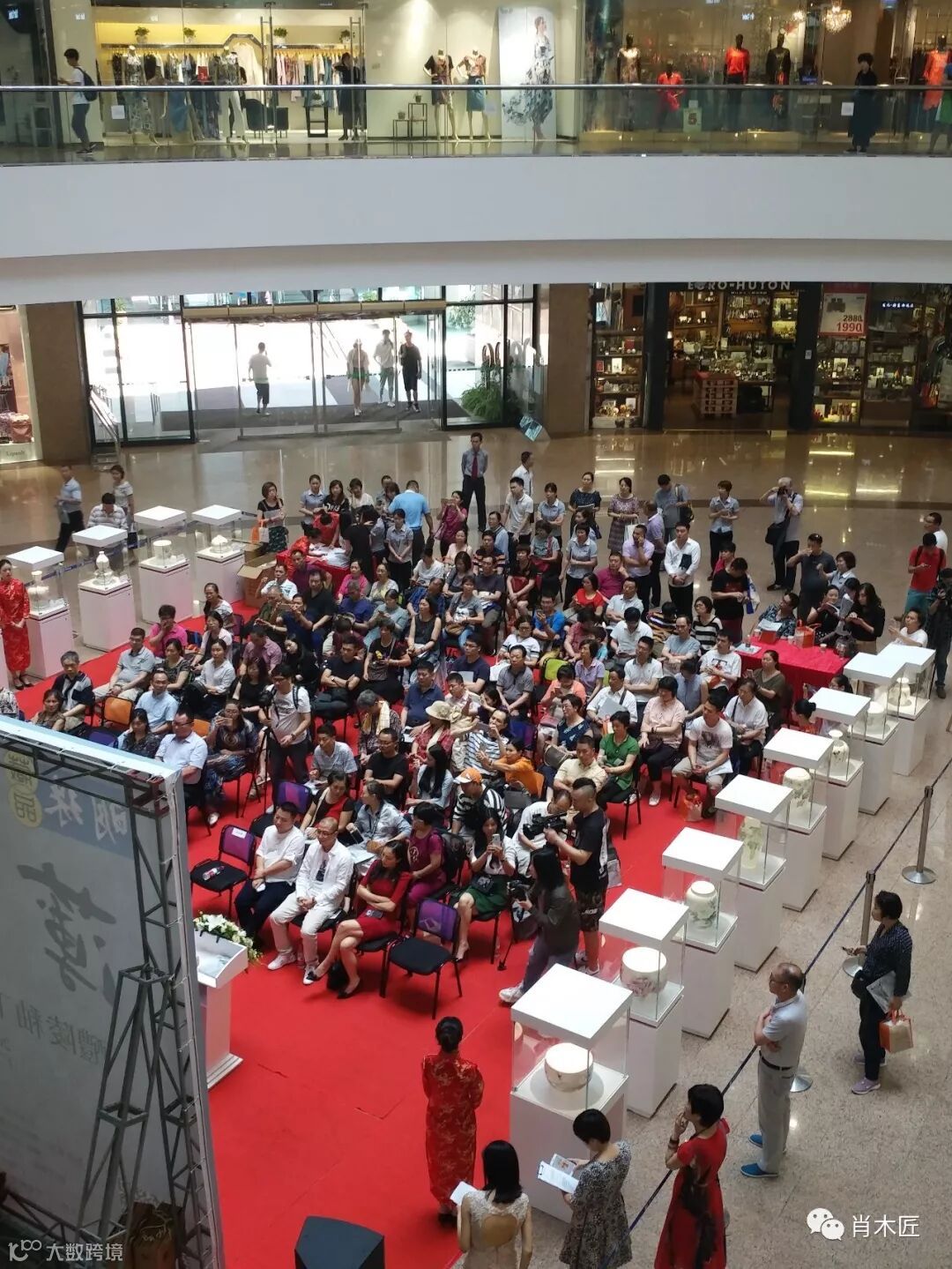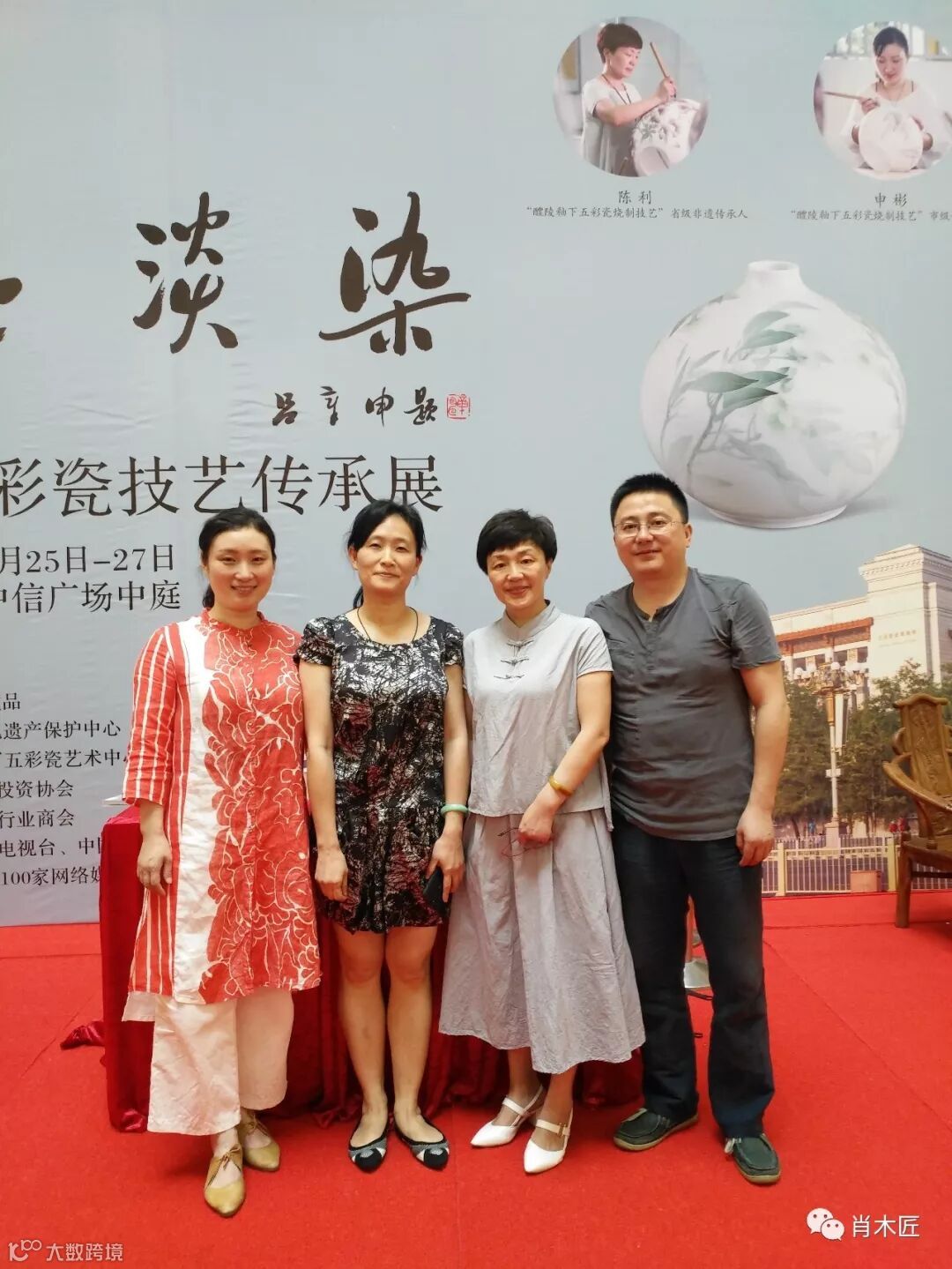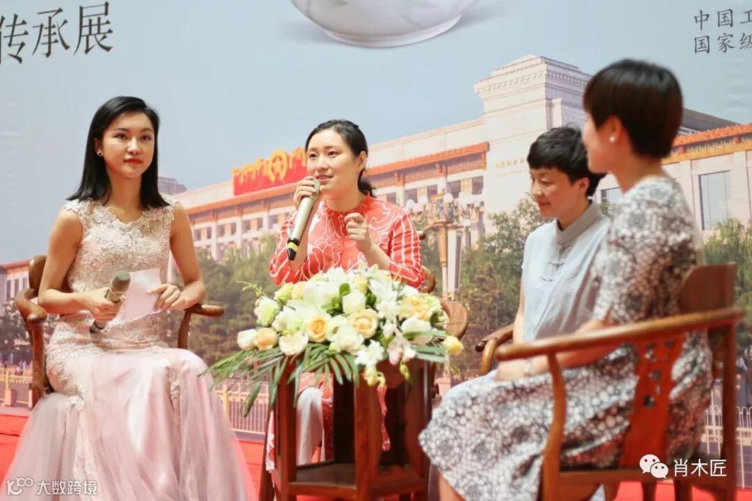 现场主持人,非遗传承人陈利女士,申彬女士,明珠藏品销售总监郭映芳女士,文化交流。