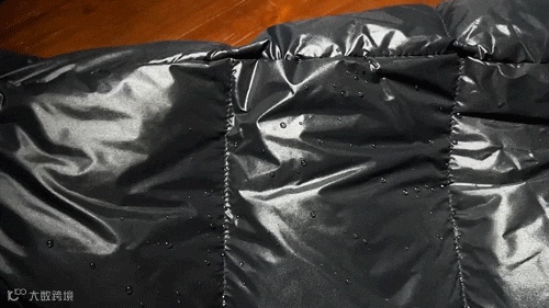 为了测试其防水性,我做了个实验:用水泼在羽绒服上,内里丝毫没有被浸湿。