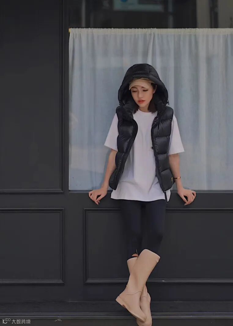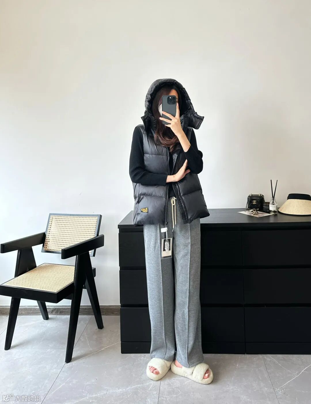 它还灰常适合叠穿,黑色的羽绒马甲,叠穿一件卫衣,个性又时髦,非常减龄有气质。