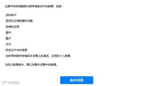 3、回退版本会导致系统内文件丢失,如果有重要信息和文件务必要备份到云端或者电脑中。