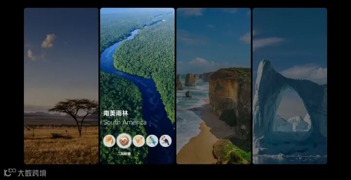 选择不同地区后,有相对应区域的动物提示音,例如南美雨林有树懒的提示音。