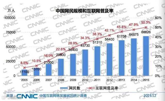 近二十年,互联网获得了飞速的发展,但根据CNNIC的数据显示(如下图),中国网民总数已趋近饱和,互联网普及率曲线逐渐平缓。这意味着,前些年一个互联网企业无需对服务精益求精,也可以依靠着互联网增长红利、国家政策驱动获得相当不错的成长的大时代已然过去。互联网+企业从“教育”用户阶段,走入“抢”用户阶段,“消费者体验”直接影响一个企业的生死。