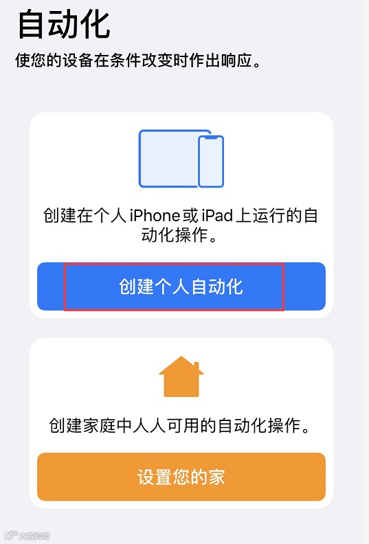 第一步:打开“快捷指令”App(如果您找不到该应用,可以直接前往 App Store 下载),在“自动化”标签页中,点击“创建个人自动化”。