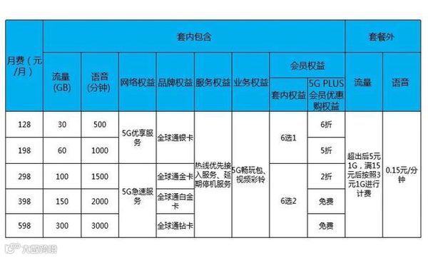 10月31日,三大电信运营商将共同启动5G商用计划。其中,中国移动的个人版5G套餐共有五档可选,最低128元套内流量30GB,包含200分钟通话;最高598元套内流量300GB,包含3000分钟通话。