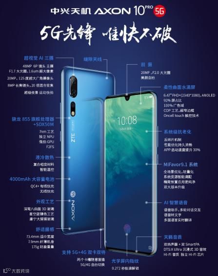 4、国内首款5G手机中兴天机Axon 10 Pro 5G发布