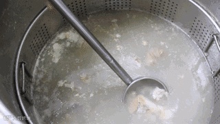 汤底选用新鲜的筒骨慢火煮熬3小时,让骨头里的骨胶充分熬进汤里,熬好的汤呈奶白色,每一口都很滋补。