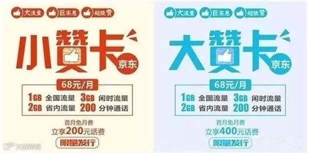 中国联通与京东联合推出了大赞卡、小赞卡