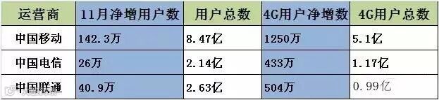 近日,三大运营商,中国移动,中国电信,中国联通,纷纷公布了11月份运营数据。