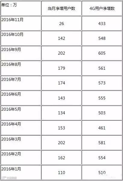 中国移动刚刚公布2016年11月份运营数据,4G用户本月净增1250.4万户,远远超过电联同期净增之和;另外就宽带方面而言,依然居于第二大固网宽带运营商之列。