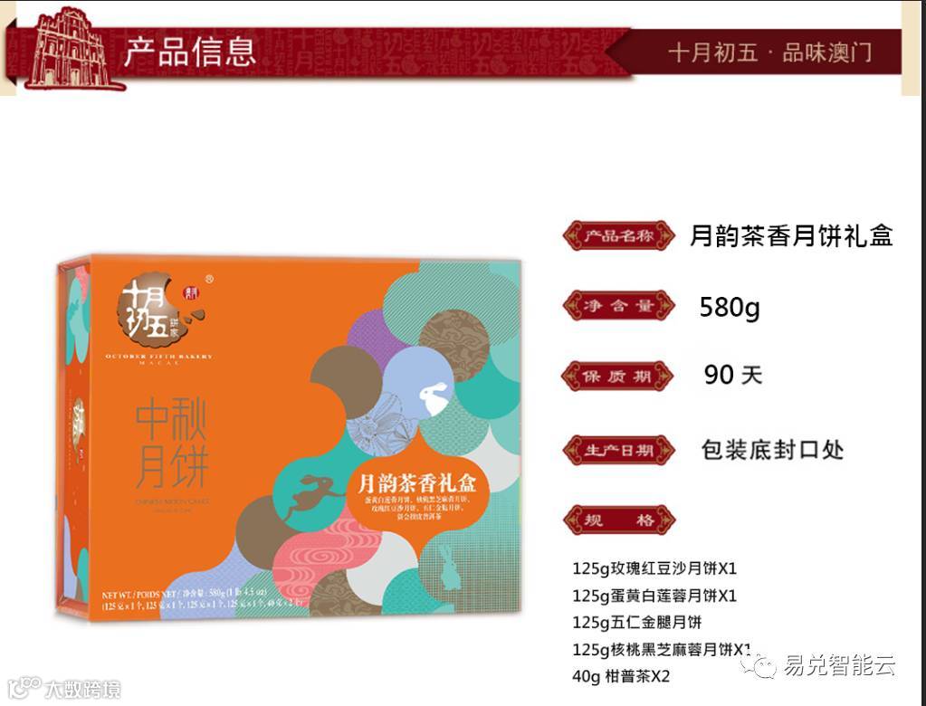 我们成功的把澳门十月初五饼家接入易兑积分商城,在这里你可以使用中国移动积分、中国电信翼支付话费红包、微信支付、支付宝购买到来自十月初五饼家的月饼。