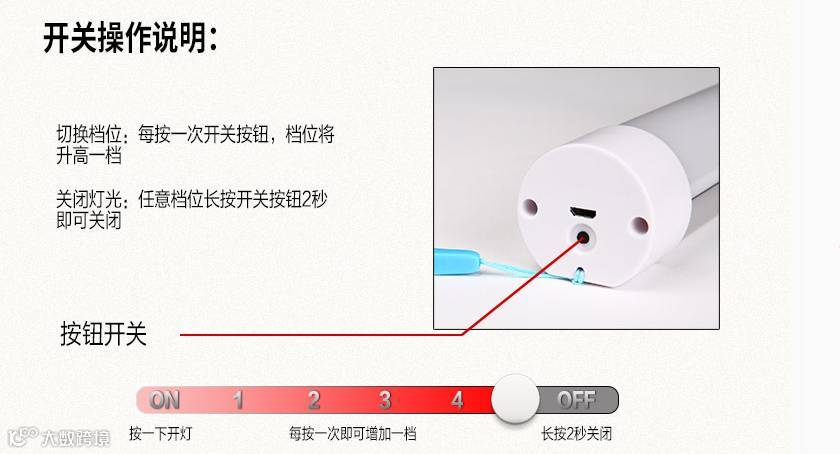 这是一款最新设计用于手持照明和警示等多功能于一体的小巧的产品,适合照明,野外应急报警,汽车抛锚警示,雾霾中行车警示等多用途,2000毫安大容量锂电池,可以持续照亮四天四夜,直径3.8厘米,长度22厘米的小巧设计,绝对不会给您增加负担,内置强力磁铁,可以紧紧吸在铁质物体表面,完美的设计让你值得拥有,并且作为礼物赠送好友,2016年,拥有她,你将会有一个新的开端!